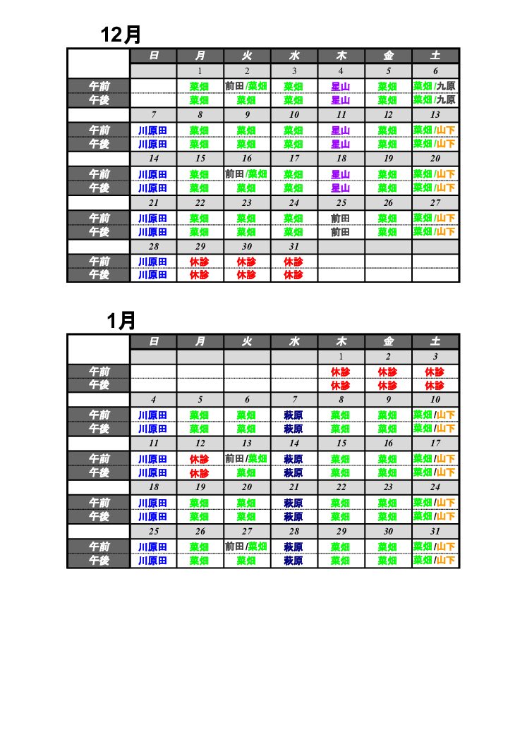 ※クリニックの都合により急遽診察担当の変更がございます。ご了承の程お願いいたします。